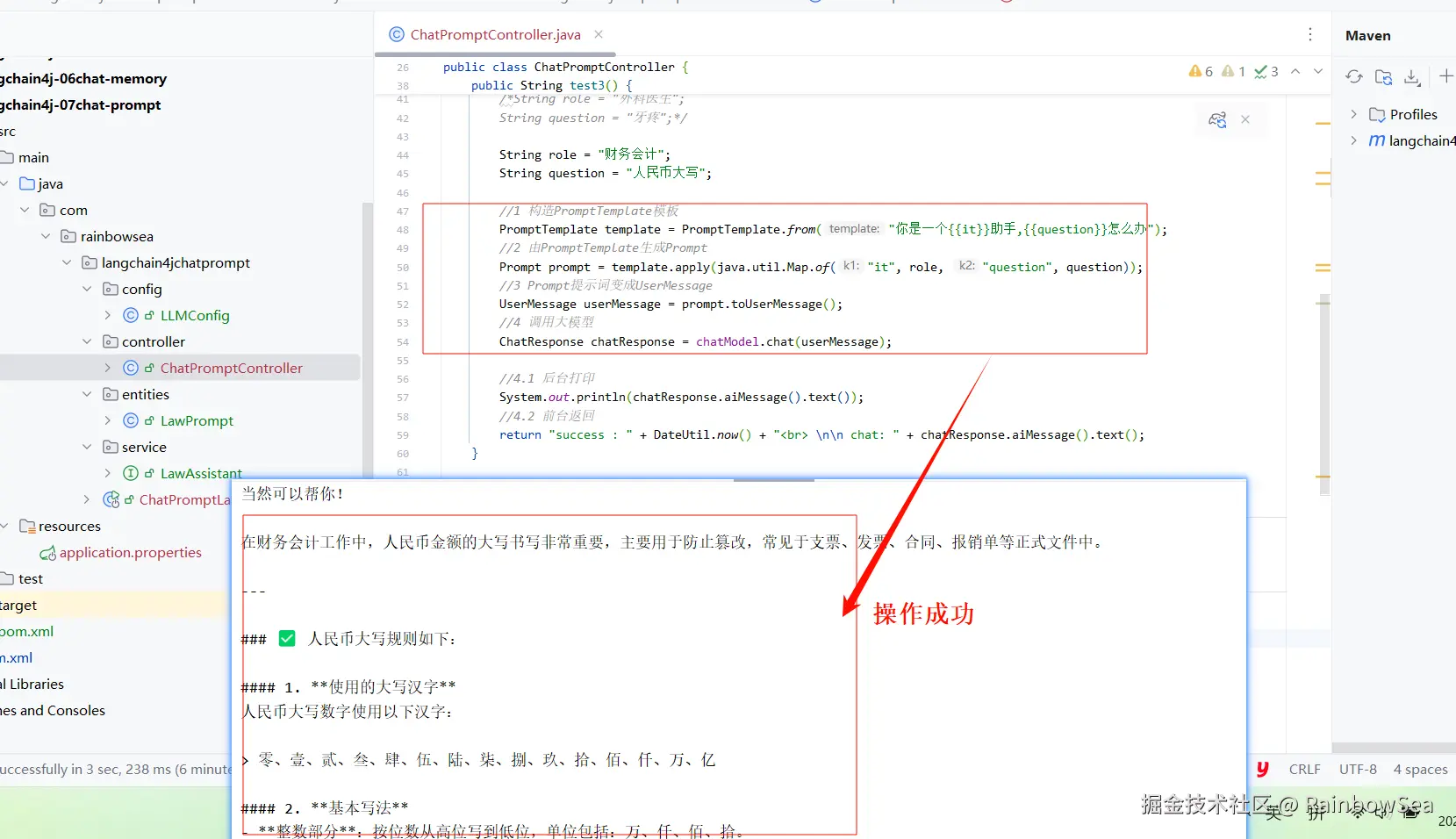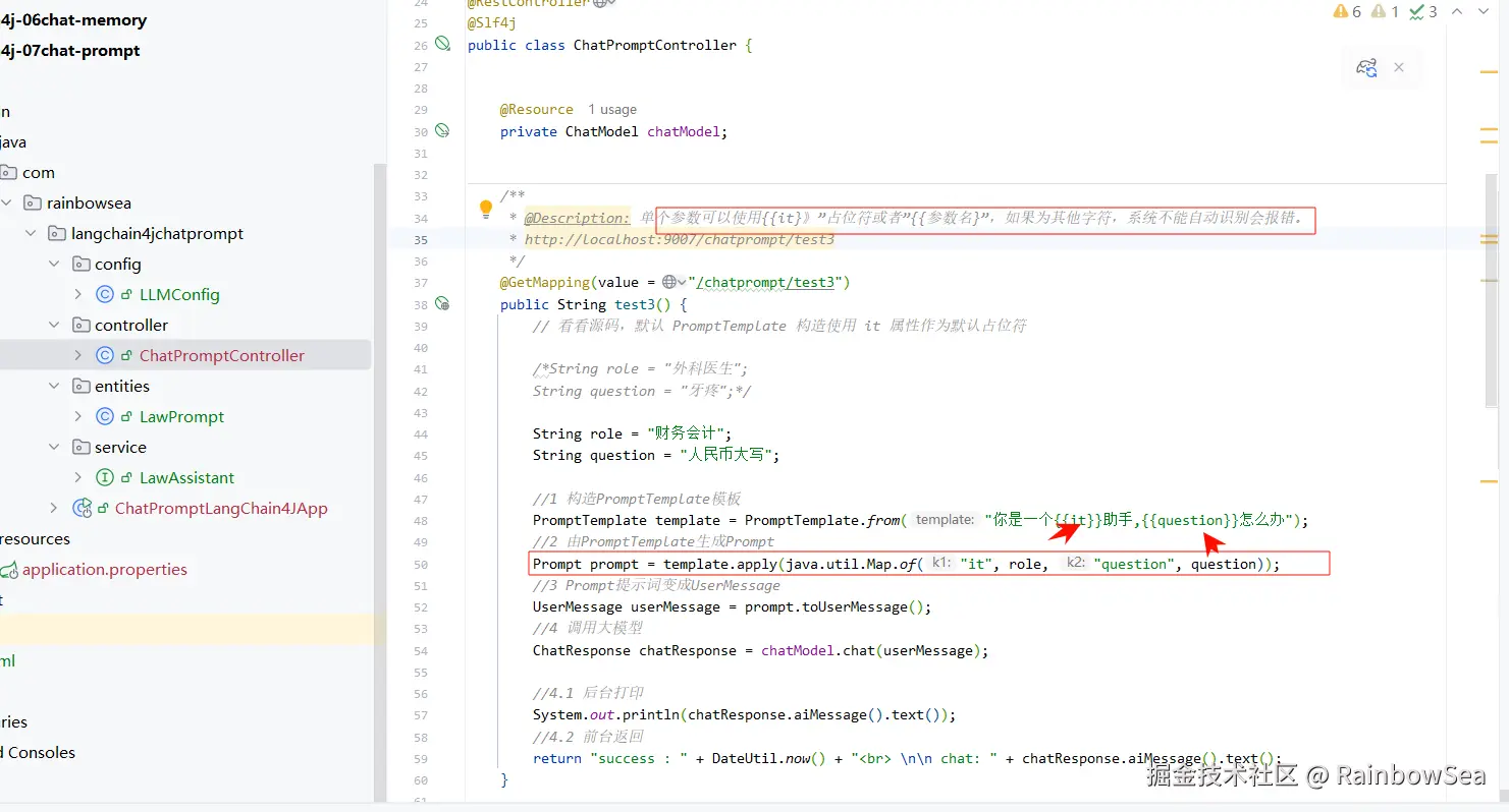 该方式,只需编写一个普通的 ChatModel ,在 Controller 层,使用 PromptTemplate 类当中的方法即可。