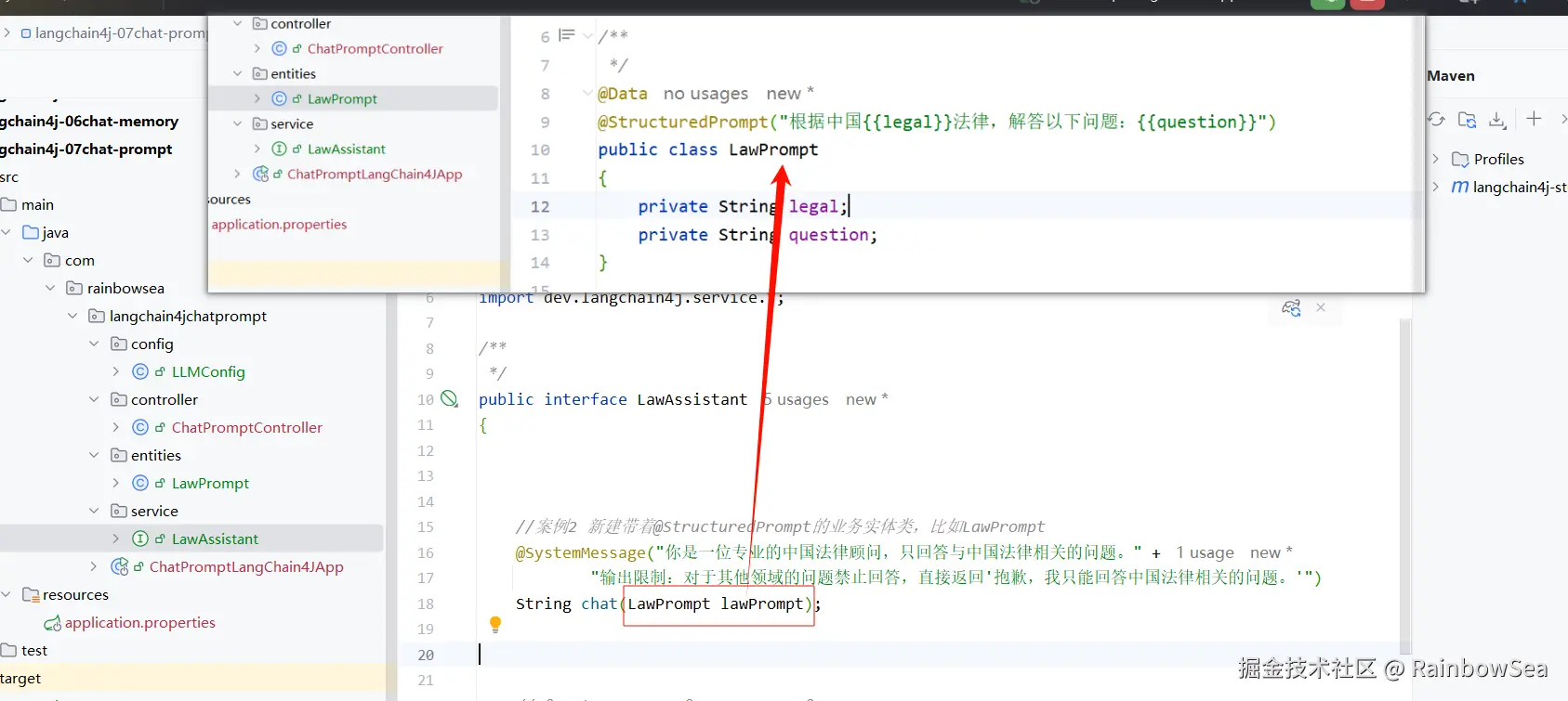 //案例 新建带着@StructuredPrompt的业务实体类,比如LawPrompt