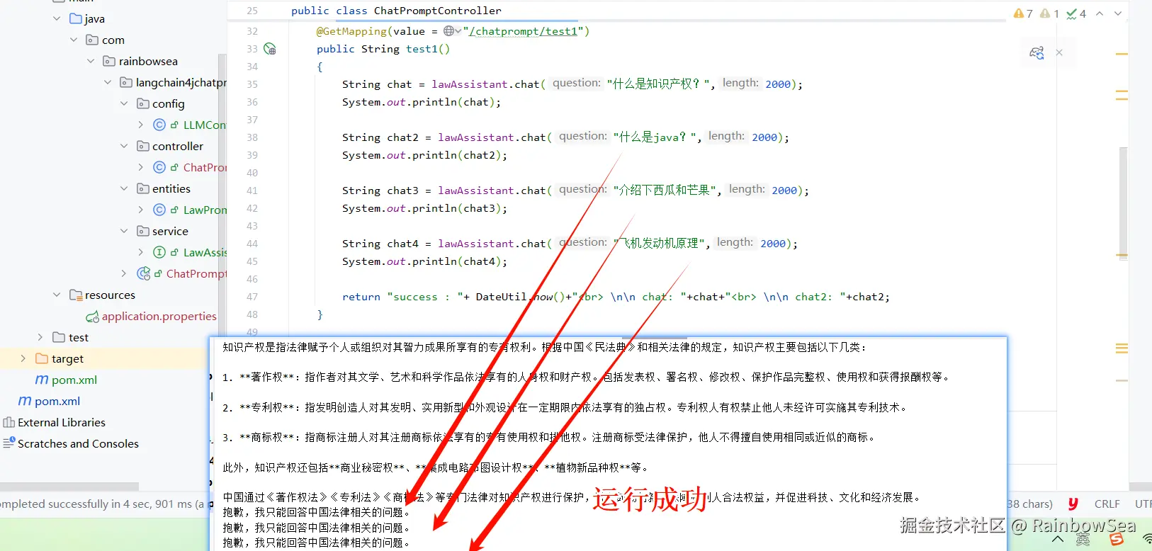 String chat = lawAssistant.chat("什么是知识产权?",2000);