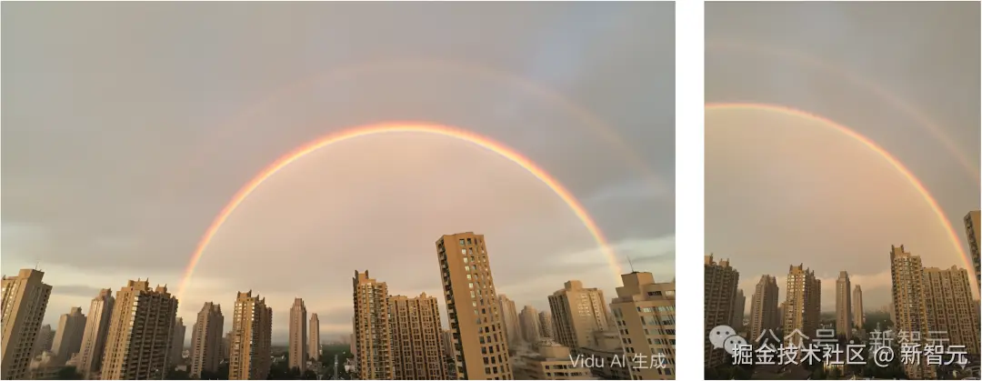 而 Vidu Q1 参考原图,成功补出未出现在图片中的另一半彩虹,展现了极强的画面理解力和一致性。