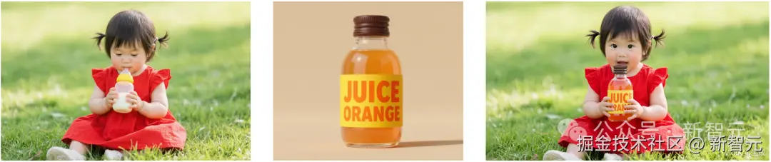 即便替换的对象,在图中比较小,也没关系,比如把小女孩手中的牛奶替换为橘子汁。