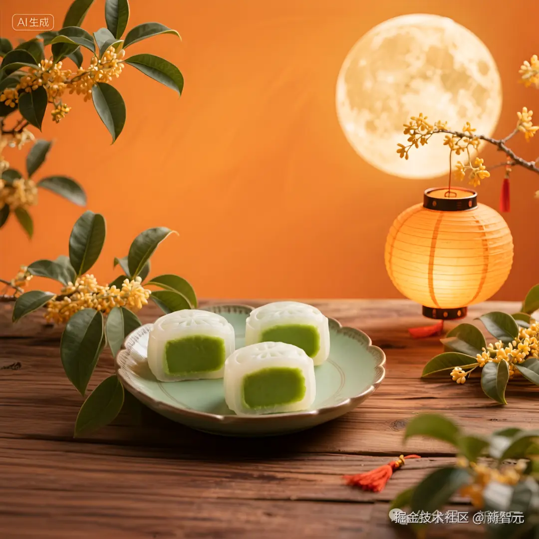 一款抹茶冰皮月饼,想要为其配上一张「花好月圆」的背景图,再扔给 Vidu。