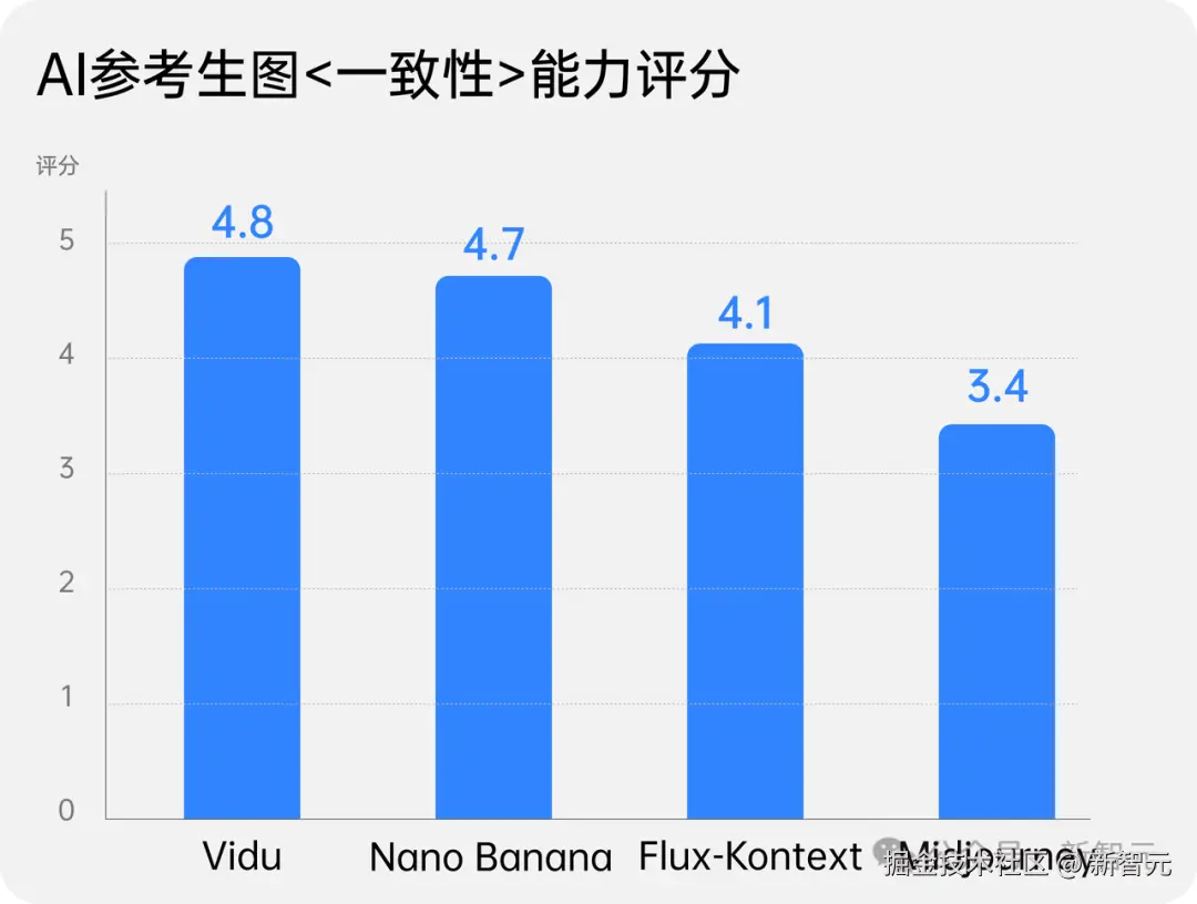 更令人惊叹的是,Vidu Q1 参考生图在一致性上的表现堪称惊艳,全面超越了 Flux Kontext 等同类产品,甚至也超过了 Nano Banana。