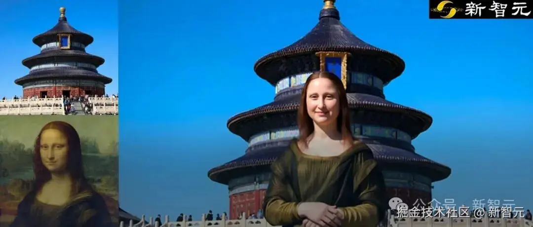 比如,蒙娜丽莎打卡北京地标祈年殿: