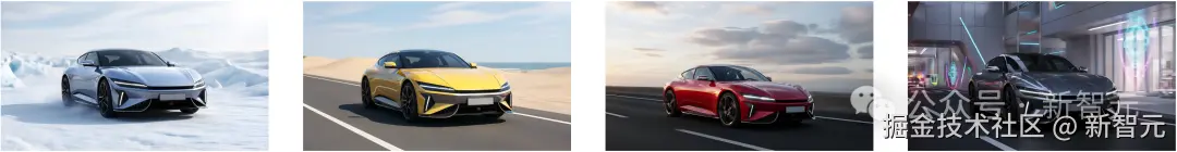 再举个栗子,输入一张汽车渲染图,就可以得到不同颜色、不同场景的图片。