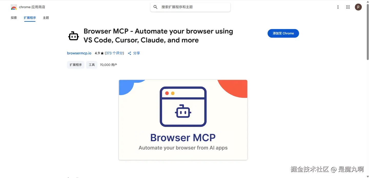 打开 Chrome Web Store 安装 Browser MCP 扩展。