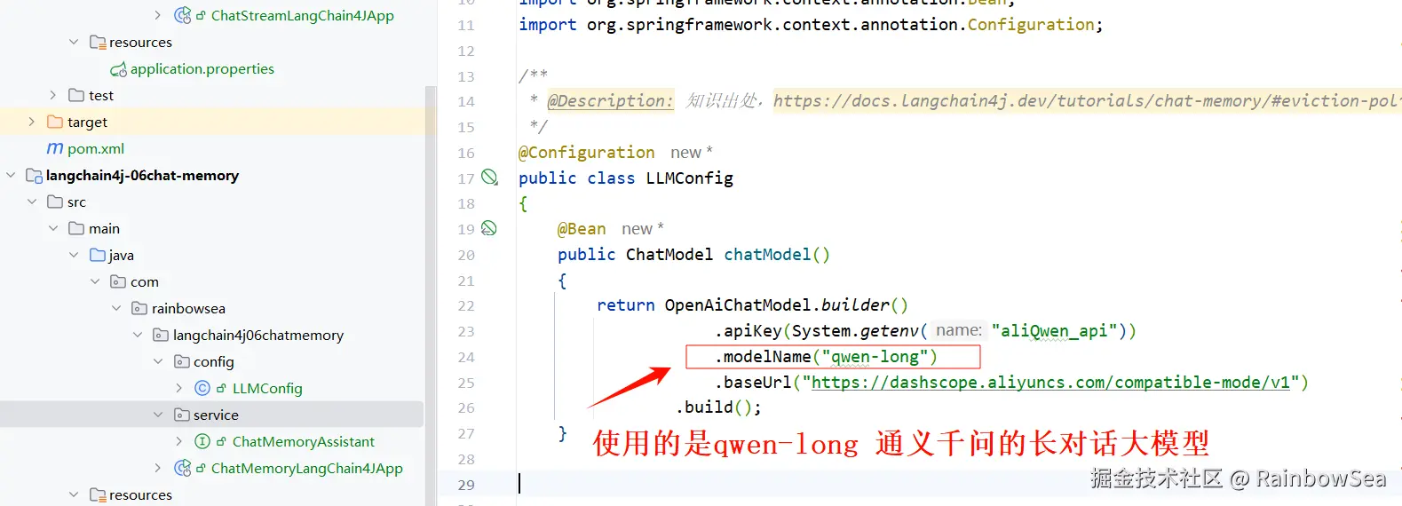 注意:这里我们要记忆缓存的话,就需要用到我们的通义千问的长对话大模型了。