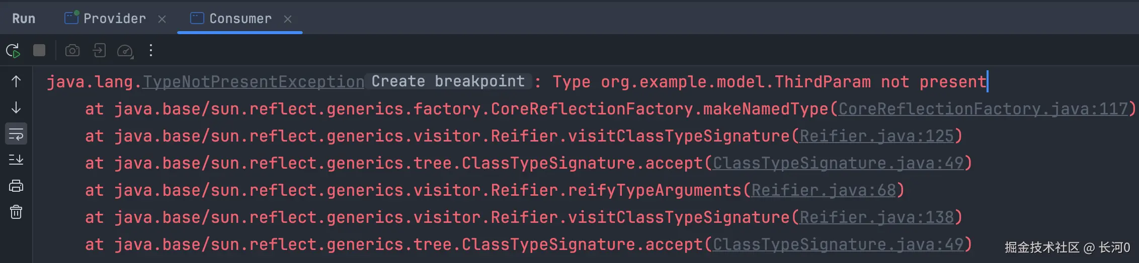 因为如果参数类型直接是 ThirdParam,消费者启动时,解析 Service Class 这一步就会因为 Class Not Found 直接报错而退出进程。ThirdParam 必须是泛型,才不至于 Service Class 无法解析。