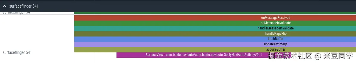 从上面时间点后SF 一直没有收到SurfaceView 的buffer 更新,直到空调界面退出,大概 5、6s 后SF 终于收到SurfaceView 重绘的buffer.