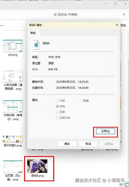 通过回收站,我们也可以试着将误删相片进行还原,实现删除照片恢复。删除照片了怎么恢复?下面为回收站还原照片的操作方法: