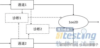 功能描述:该架构同样采用两个到诊断的通道并行工作。如果其中一个通道故障,则停止该通道输出,正常的通道继续输出。降级操作:当出现一次故障时,系统仍能降级到1oo1D工作。