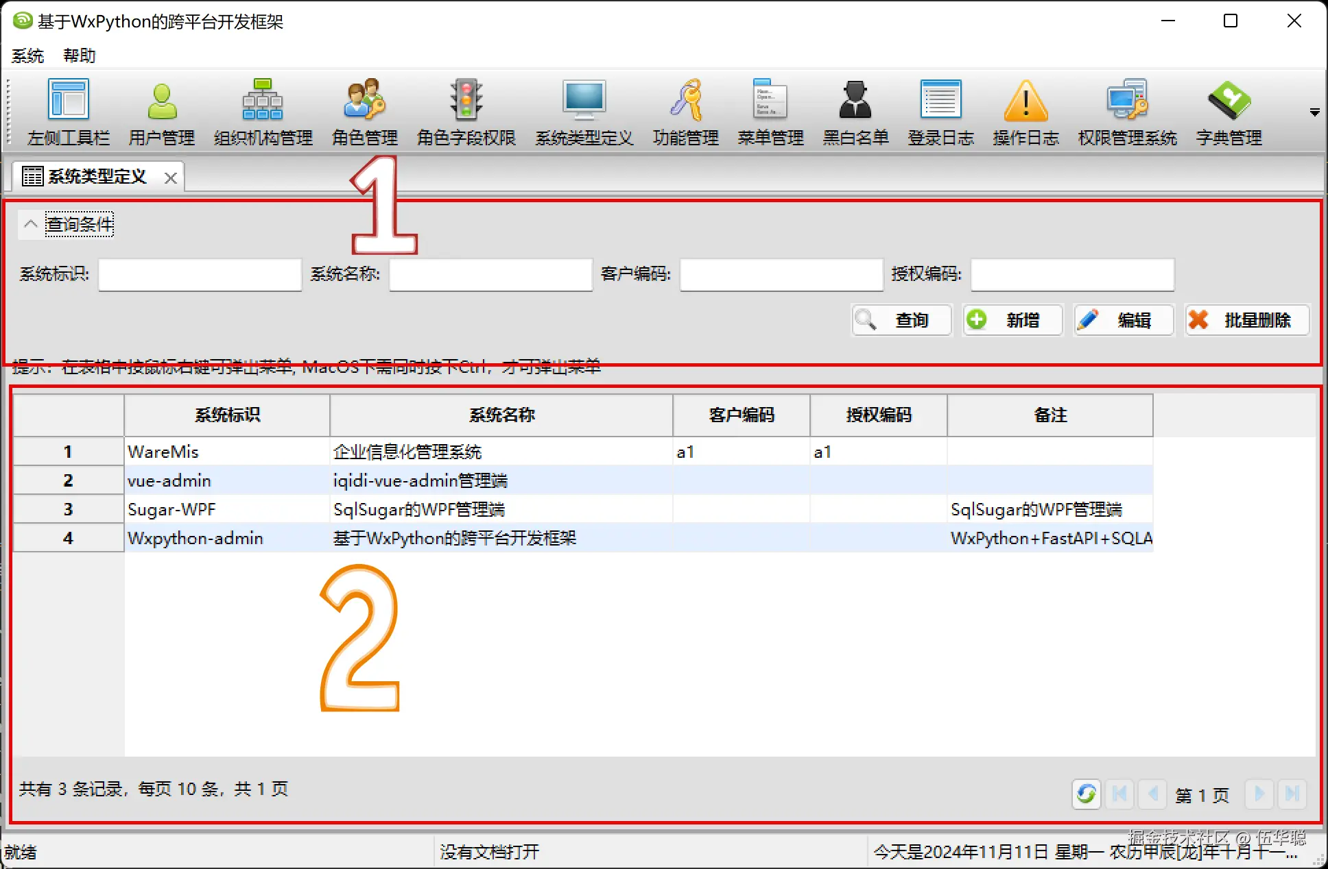 业务列表窗体界面一般也是分为两个部分