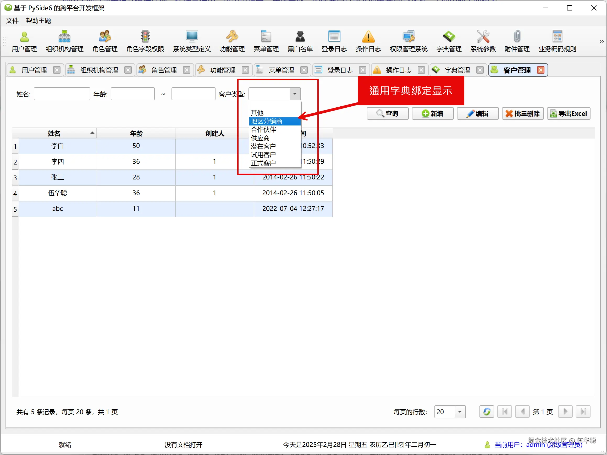 对于业务的客户信息列表界面,生成的代码如下所示(以客户信息表为例):