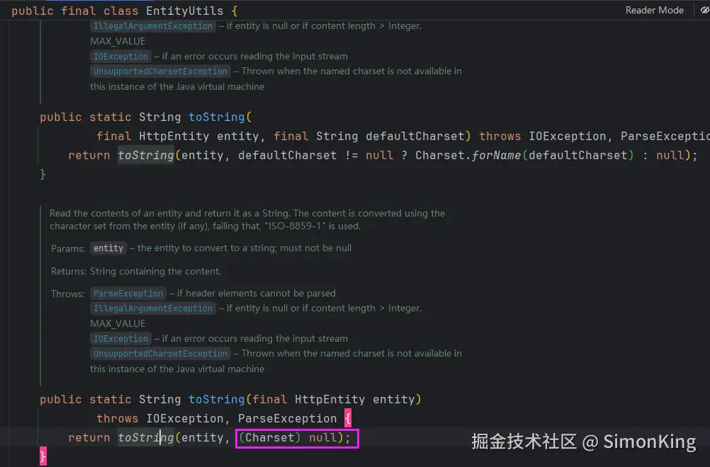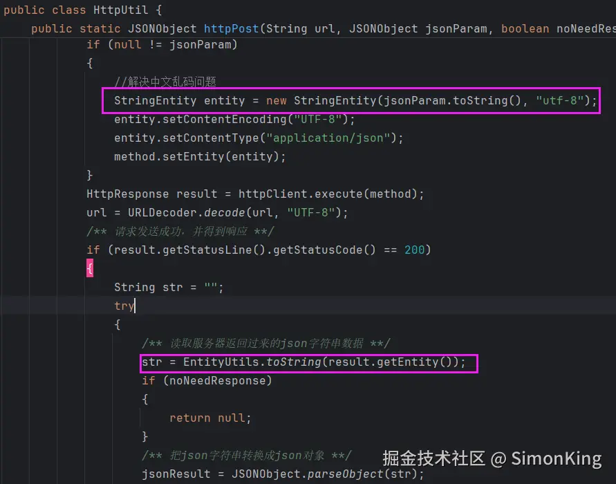 不得已,只能认真读代码,才发现EntityUtils.toString() 未指定编码,默认是ISO-8859-1,导致乱码,如下图。