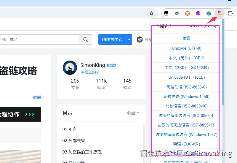 1、手动选择编码:需要借助浏览器的扩展插件,选择不同的编码,UTF-8是的首选。