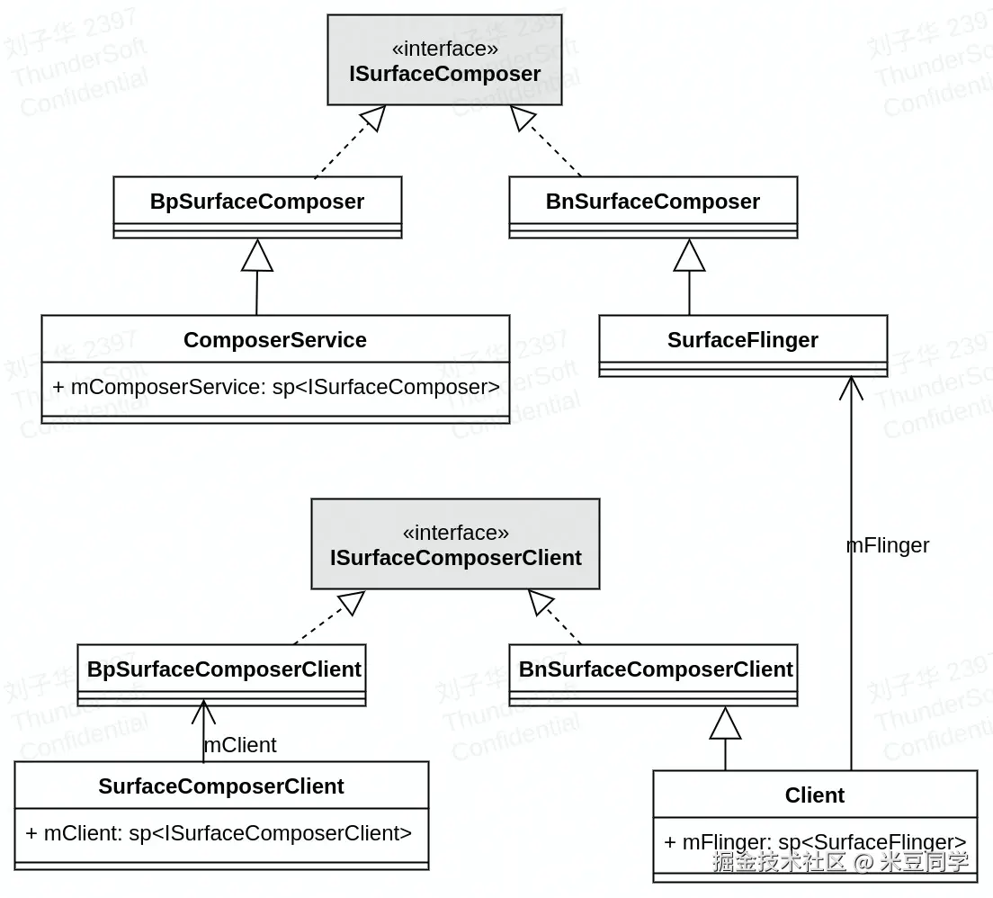 SF提供与其他进程通信的两个Binder : ISurfaceComposer、ISurfaceComposerClient。