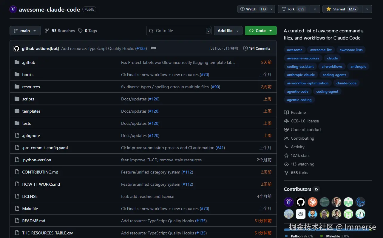 逛 GitHub 的时候,看到了一个叫 awesome-claude-code 的仓库,这个项目收集了一堆 Claude Code 超实用的命令、配置文件和工作流程,能让你的 Claude Code 体验提升好几个档次。