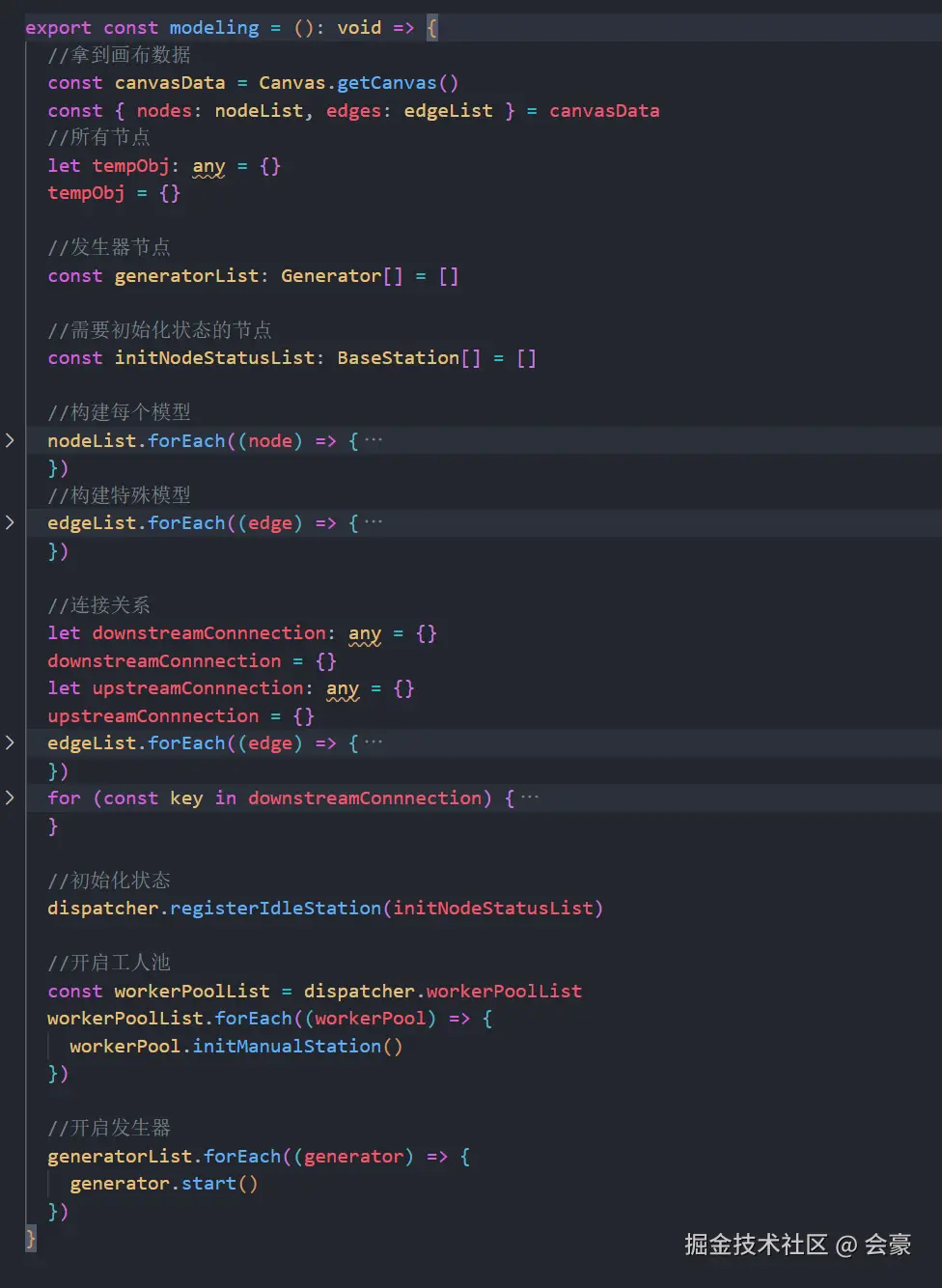 在上述代码,最下面,有一个开启发生器,也就是说我们在建完模后,就立即开启了发生器的start(),而这个modeling方法,则在仿真控制器里面运行