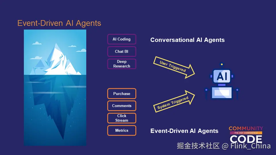 市面上已经存在众多AI 智能体框架,那么为什么Apache Flink社区还要开发一个新的框架呢?答案在于Flink Agents专注于一个特殊的应用场景——事件驱动的智能体。