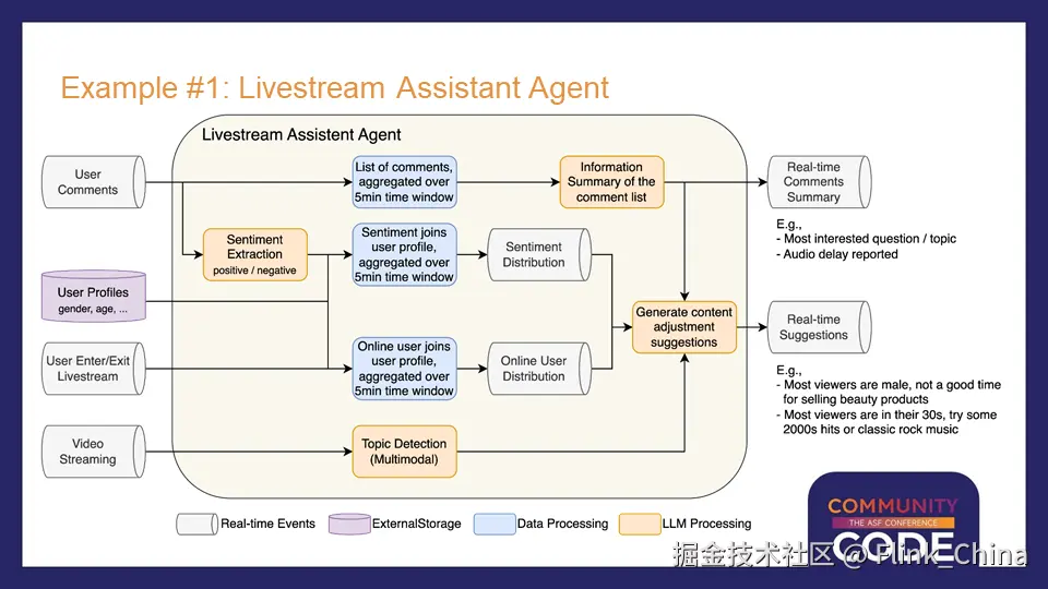 通过事件驱动的AI智能体,系统可以实时分析最近几分钟内的所有弹幕评论,进行信息提取和汇总。比如识别出观众询问最多的问题,或者及时发现技术问题(如音画不同步、声音延迟等),让主播能够及时响应和解决。