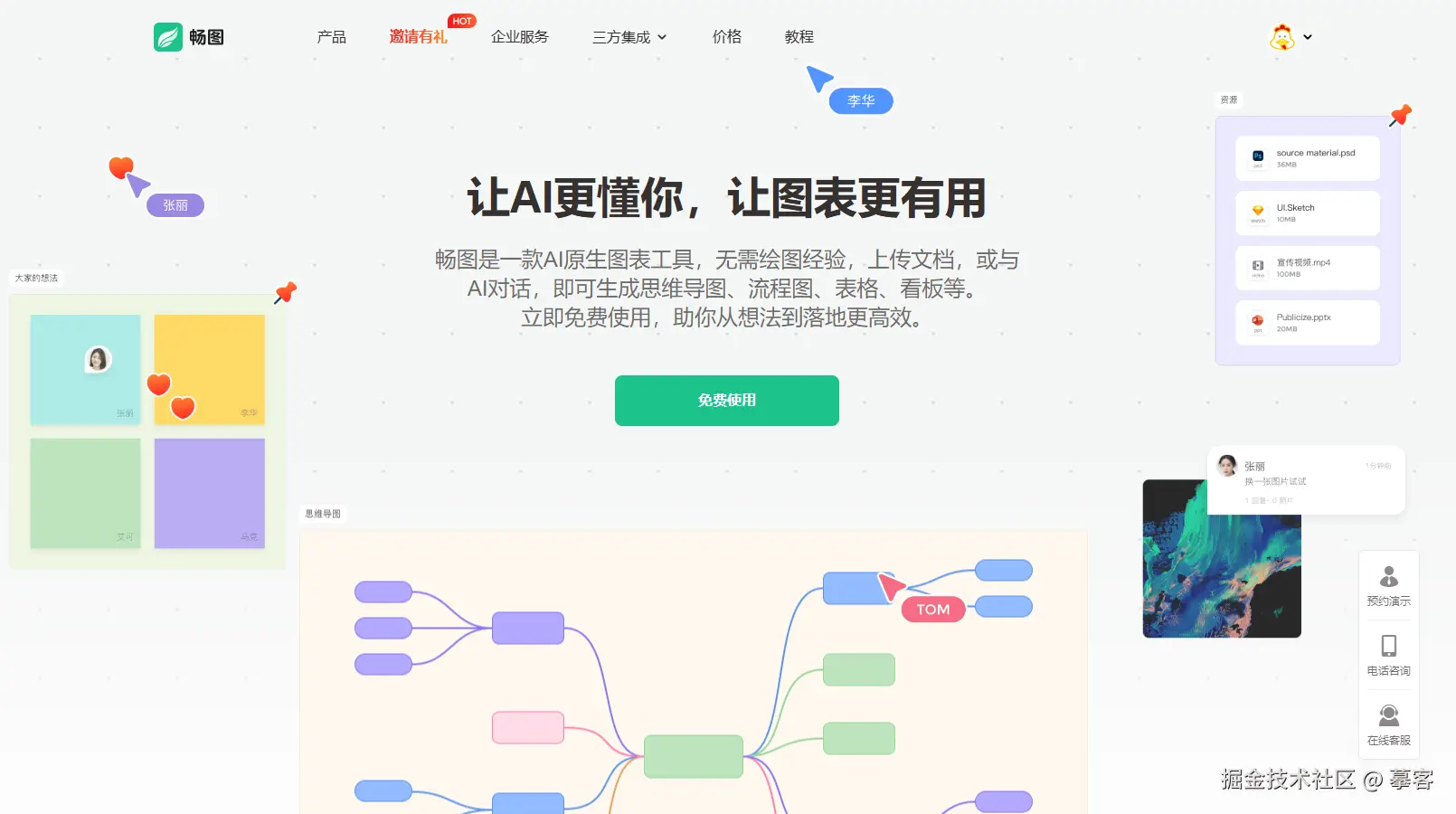 畅图是一款AI驱动的在线图表工具,与AI简单对话,就能一键生成思维导图、流程图、鱼骨图、表格、时间线、类图等多种可视化图表。它不仅能帮助个人快速绘制图表,还能让团队在同一个画布上实时协作,提高信息表达和沟通效率,是职场人必备的AI图表神器。