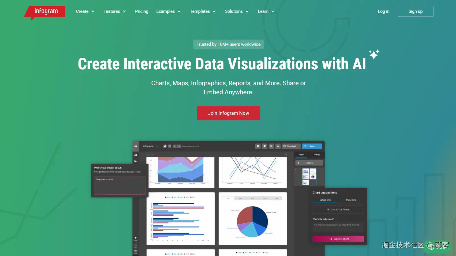**推荐理由:**Infogram的AI辅助生成和实时数据更新功能,特别适合需要频繁更新数据的营销团队和新闻工作者,其丰富的模板和品牌定制选项则让图表更具专业性。