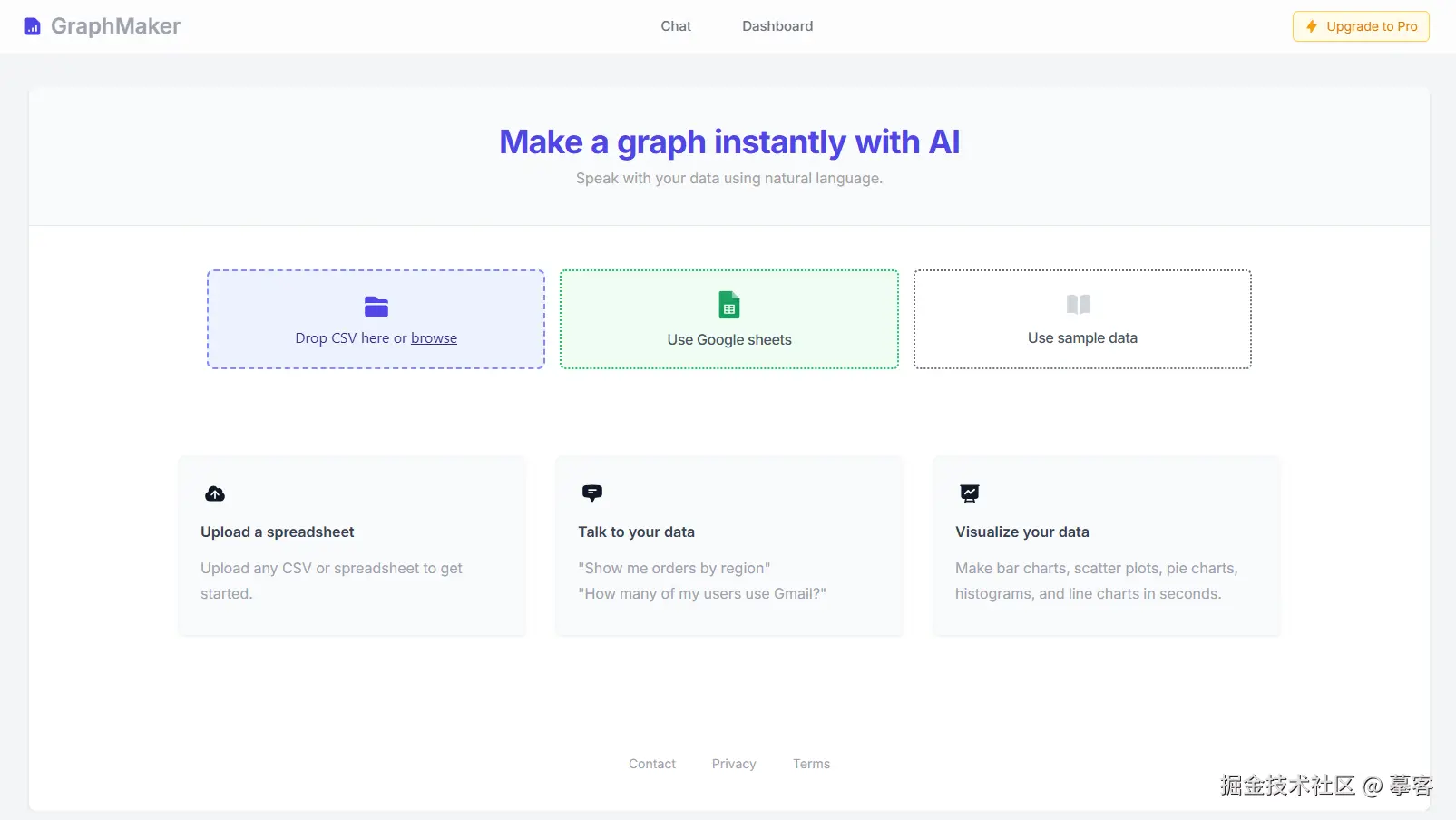 GraphMaker 是一款AI数据图表制作工具,无论是数据分析师、市场营销人员还是产品经理,只需上传数据文件或输入自然语言指令,就可以让AI生成图表了,还能对生成的图表进行进一步美化和编辑,满足多样化职场需求。