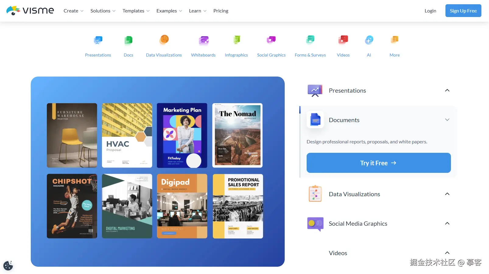 Visme 是一款集 AI 驱动图表生成与多功能设计于一体的在线工具,旨在帮助用户快速将数据转化为引人入胜的视觉内容。它还支持交互式内容创建,特别适合需要动态展示数据的用户。