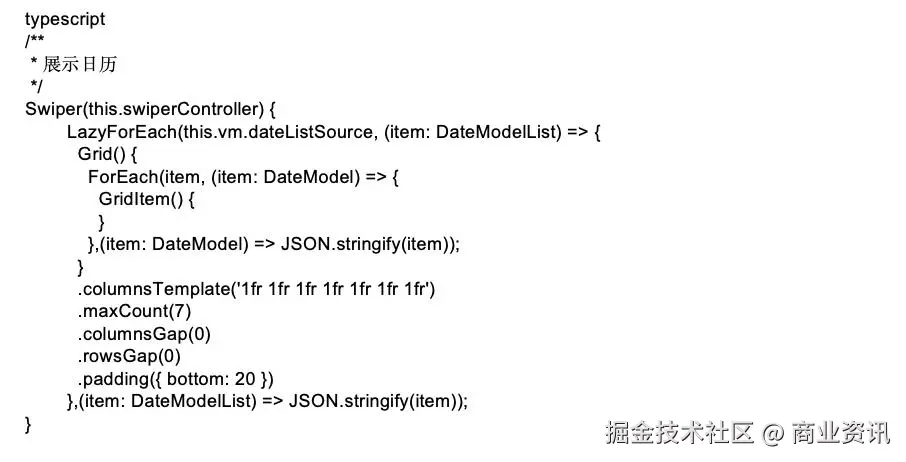 通过使用Swiper组件结合计算每月的日期实现日期轮播查看。