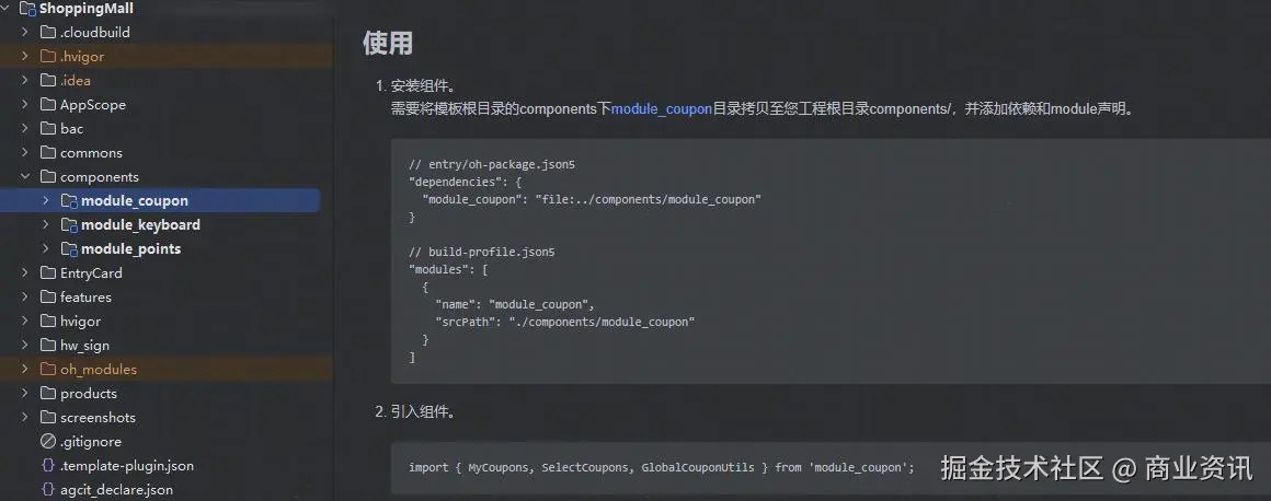 若开发者已搭建好自己的应用工程,但暂未实现其中的部分场景能力,可以选择取用其中的业务组件,集成在自己的工程中。