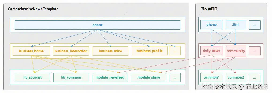 · 分层架构设计 + 组件化拆分,支持开发者在开发时既可以选择完整使用模板,也可以根据需求单独选用其中的业务组件。