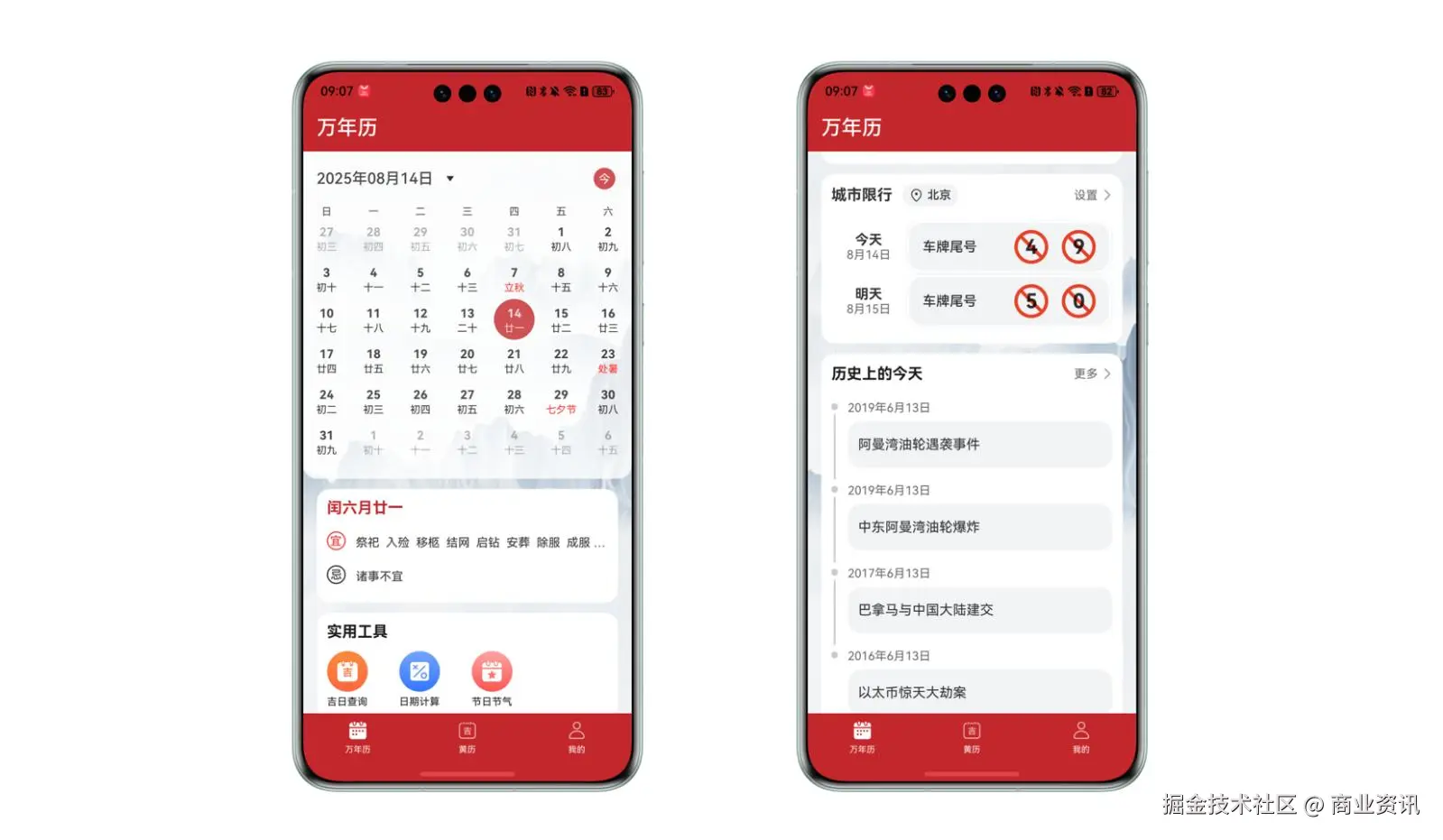 · 部分核心代码参见黄历实现章节。