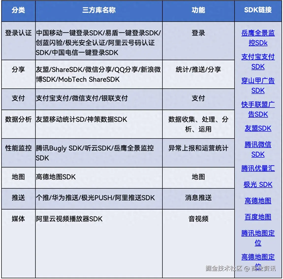 2) 行业常用三方SDK