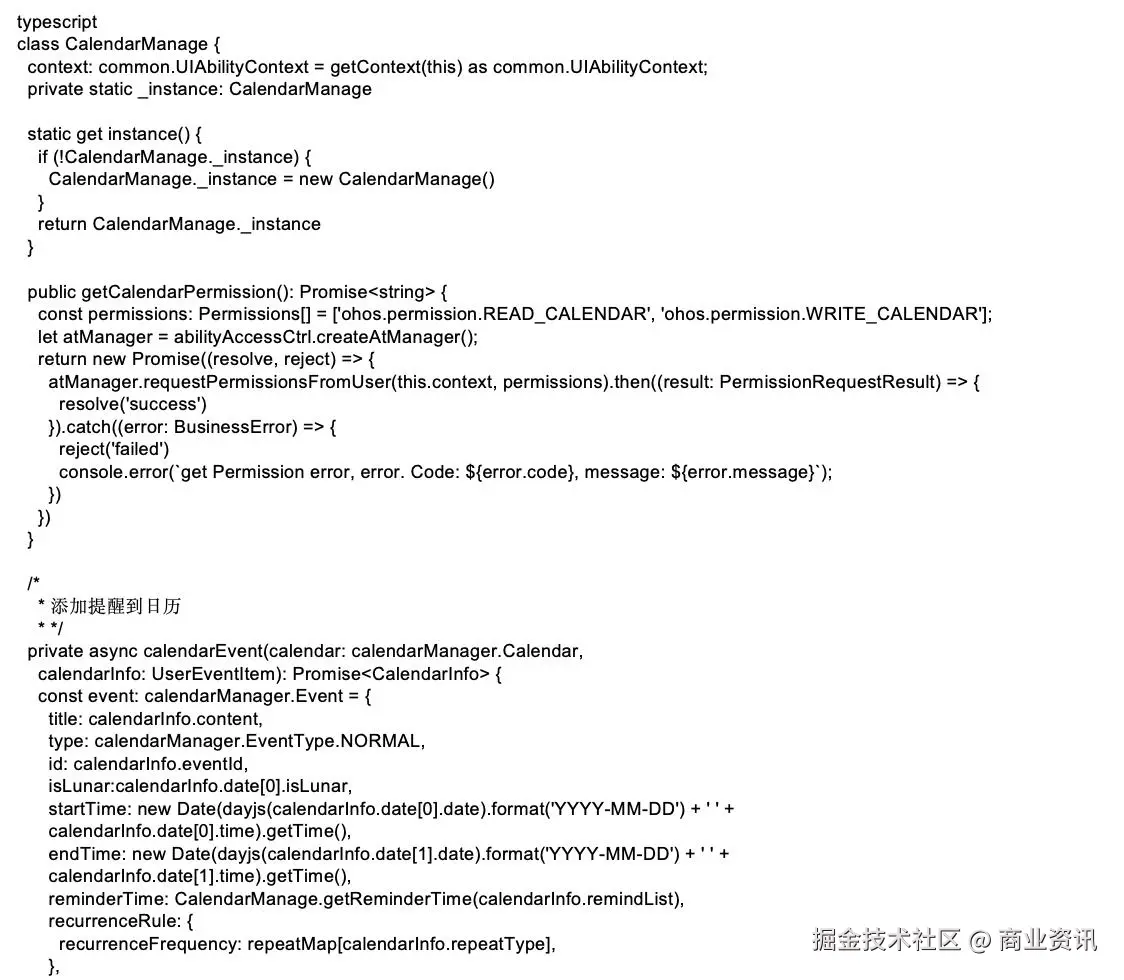 通过@kit.CalendarKit提供的提供日历与日程管理能力将应用中的工作、生活中与时间相关的日程服务与系统日历进行集成,从而实现日程管理、事件创建、查询等功能。