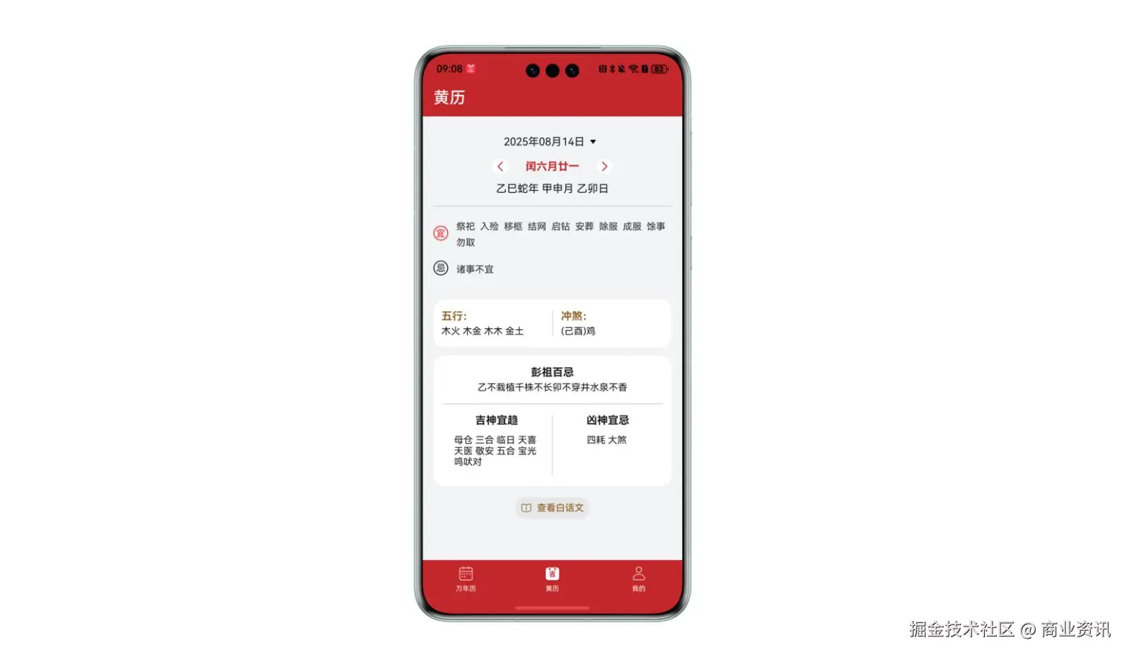 · 支持根据选择的黄历查看白话文。
