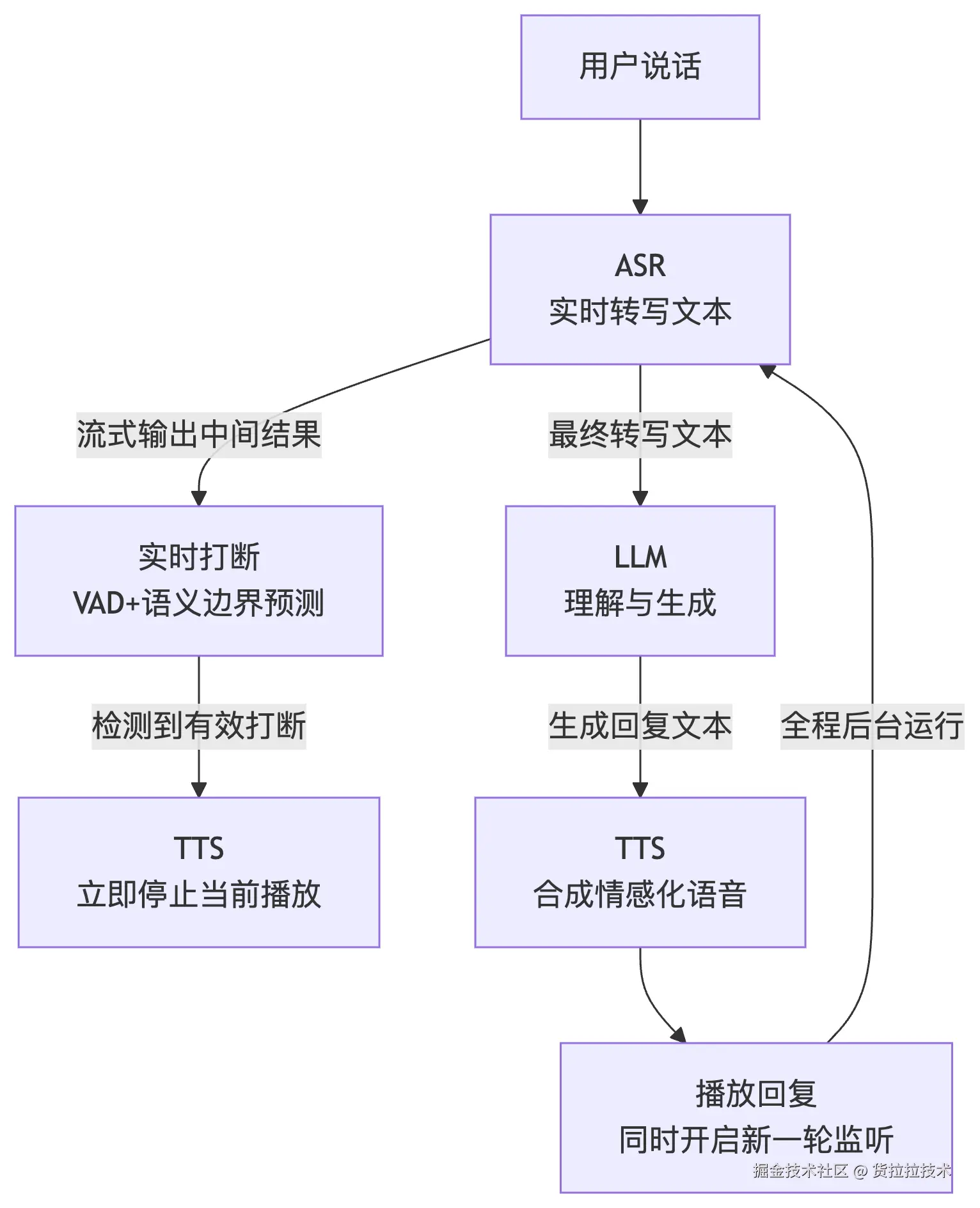 主要原因:ASR流式输出延迟低,但片段文本语义不完整,难以快速进行意图判断。