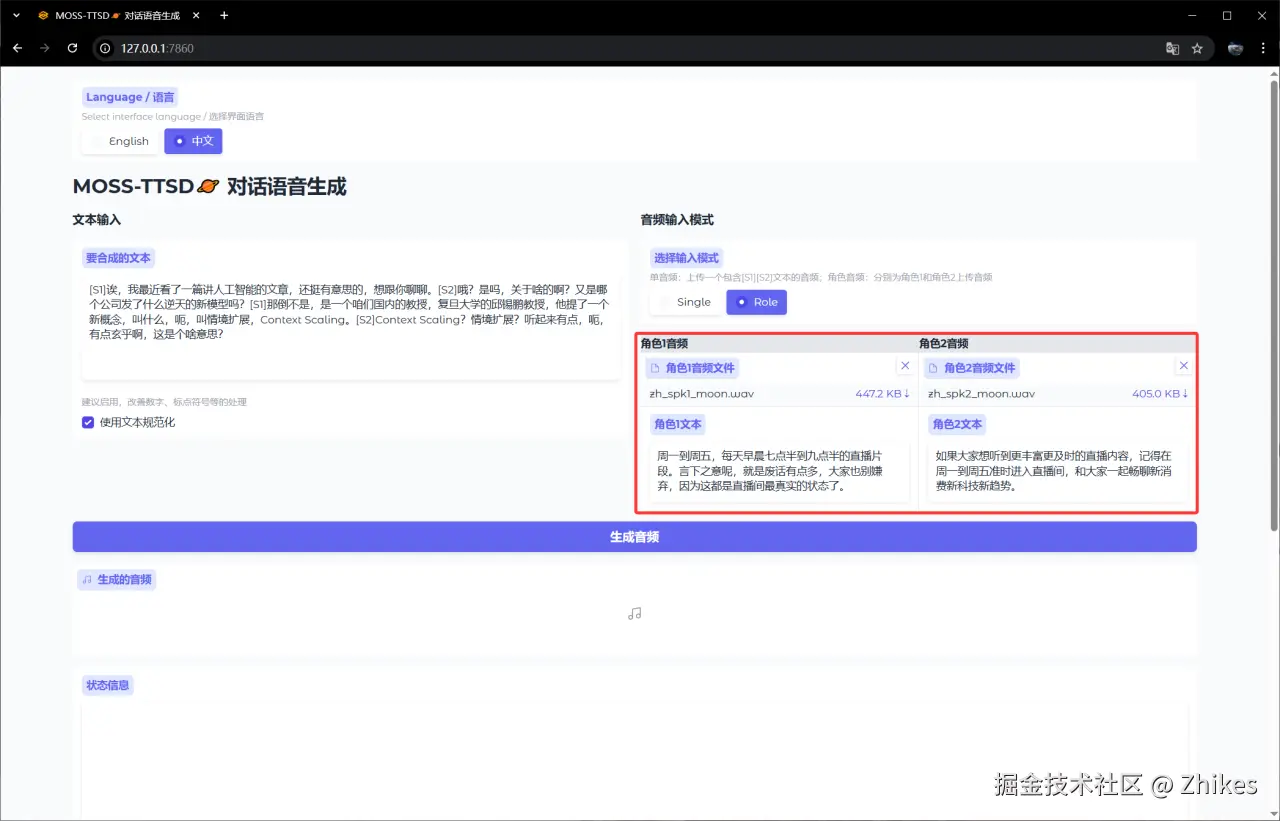 语音作为人类交流和人机交互的核心媒介,其自然度、表现力和韵律感直接决定了交互体验的质量。在播客、访谈、直播等场景中,对话语音是信息传递的主要形式。然而,传统文本到语音(TTS)模型在单句生成上虽有突破,但在复杂对话场景中,缺乏对整体语境的建模能力,导致生成的语音韵律单一,缺乏真实感。针对这一挑战,MOSS-TTSD(Text to Spoken Dialogue)推出了,一个专为对话场景设计的语音生成模型,带来中英双语、自然流畅、支持多说话人音色克隆的对话语音生成体验。
