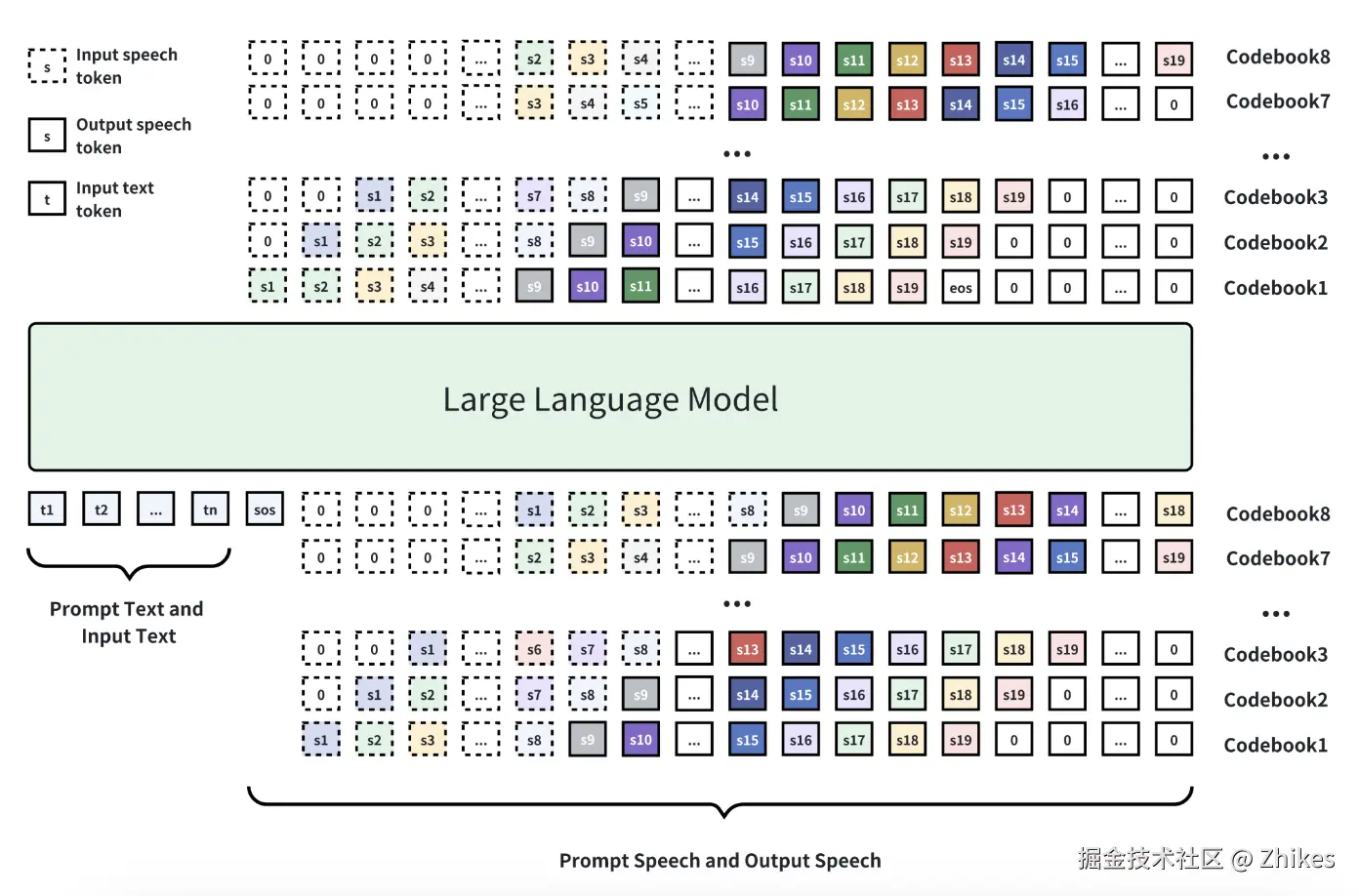 受 MusicGen 和 VOICECRAFT 的启发,MOSS-TTSD 采用 自回归建模 结合 多头 Delay 的方式生成语音 token。这种方法能够有效捕捉对话中的长期依赖关系,确保语音在韵律、语调和风格上的连贯性。