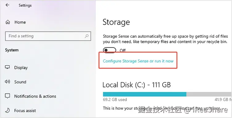 Windows 10 和 11 内置了一项名为“存储感知”的功能,可以自动清理临时文件和旧下载内容。当“磁盘清理”无法删除 Windows 11 或 Windows 10 电脑上的文件时,您可以使用此功能。