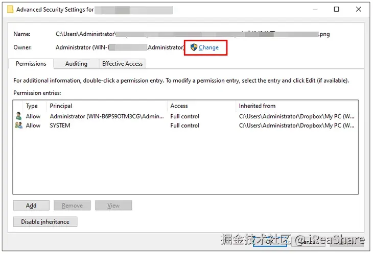 在“所有者”旁边,点击“更改”,然后输入您的用户名。点击“确定”。