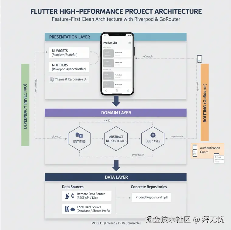 本教程的目标,就是引导你从第一天开始,就构建一个专业、可扩展且高性能的 Flutter 应用。我们将摒弃那些临时抱佛脚的编码方式,直接采用业界验证的最佳实践。这不仅能让你写出更健壮的代码,更能为你未来的职业生涯打下坚实的架构思维基础。