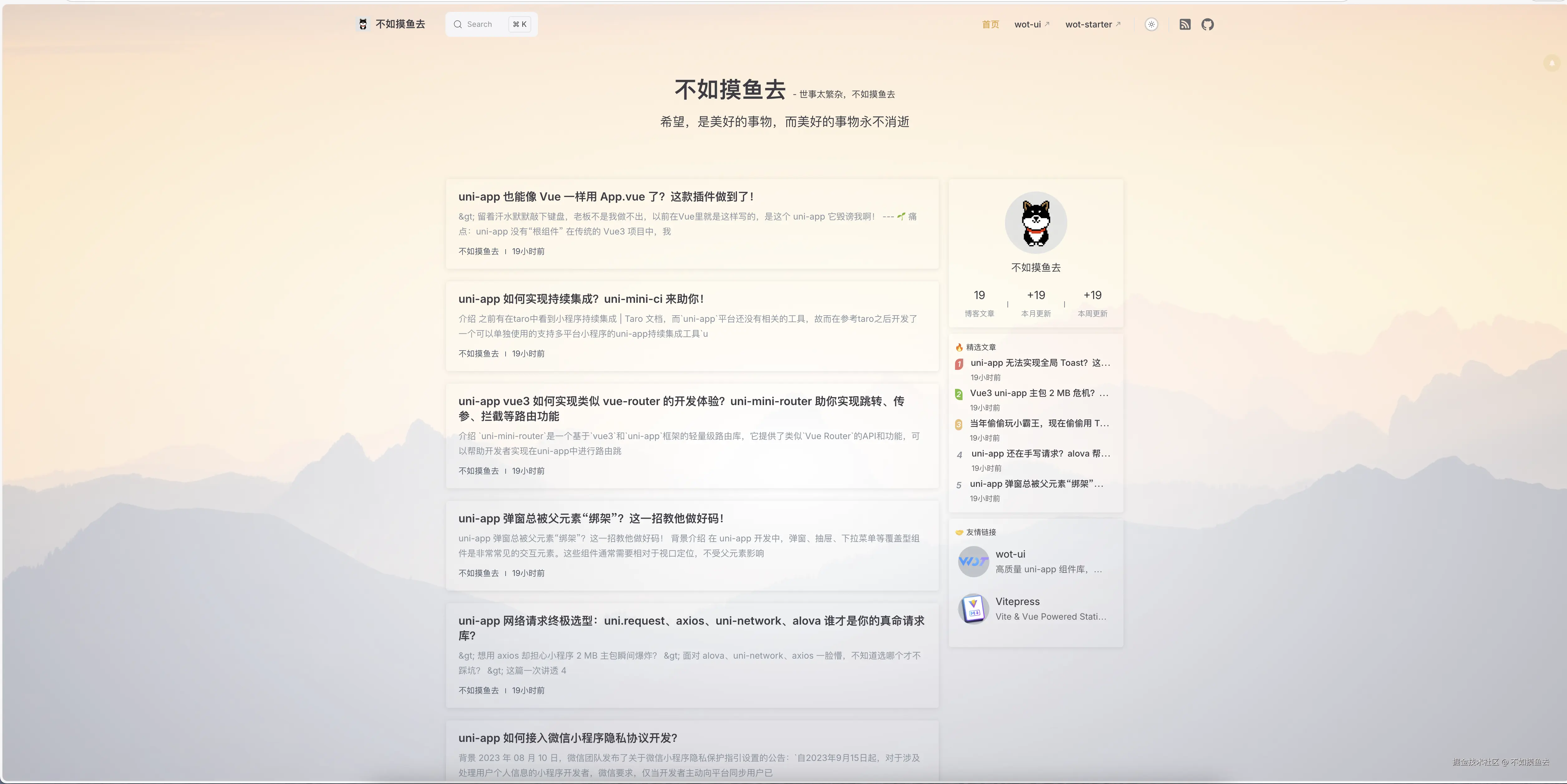 现在博客已经简单调整了主题后上线了,博客的地址:blog.wot-ui.cn/
