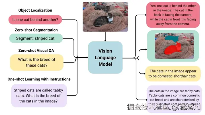 - 生成响应:基于融合理解,模型输出文字回答,如“图片中有一只猫”。