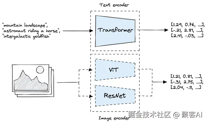 - 对比学习(如CLIP模型):通过大规模配对数据训练,模型学习正负样本的相似度。例如,猫图片与“一只猫”文本配对时提升相似度,而与“一条狗”文本配对时降低相似度。经过数千万次迭代,AI学会将不同模态“翻译”为内部一致表示。