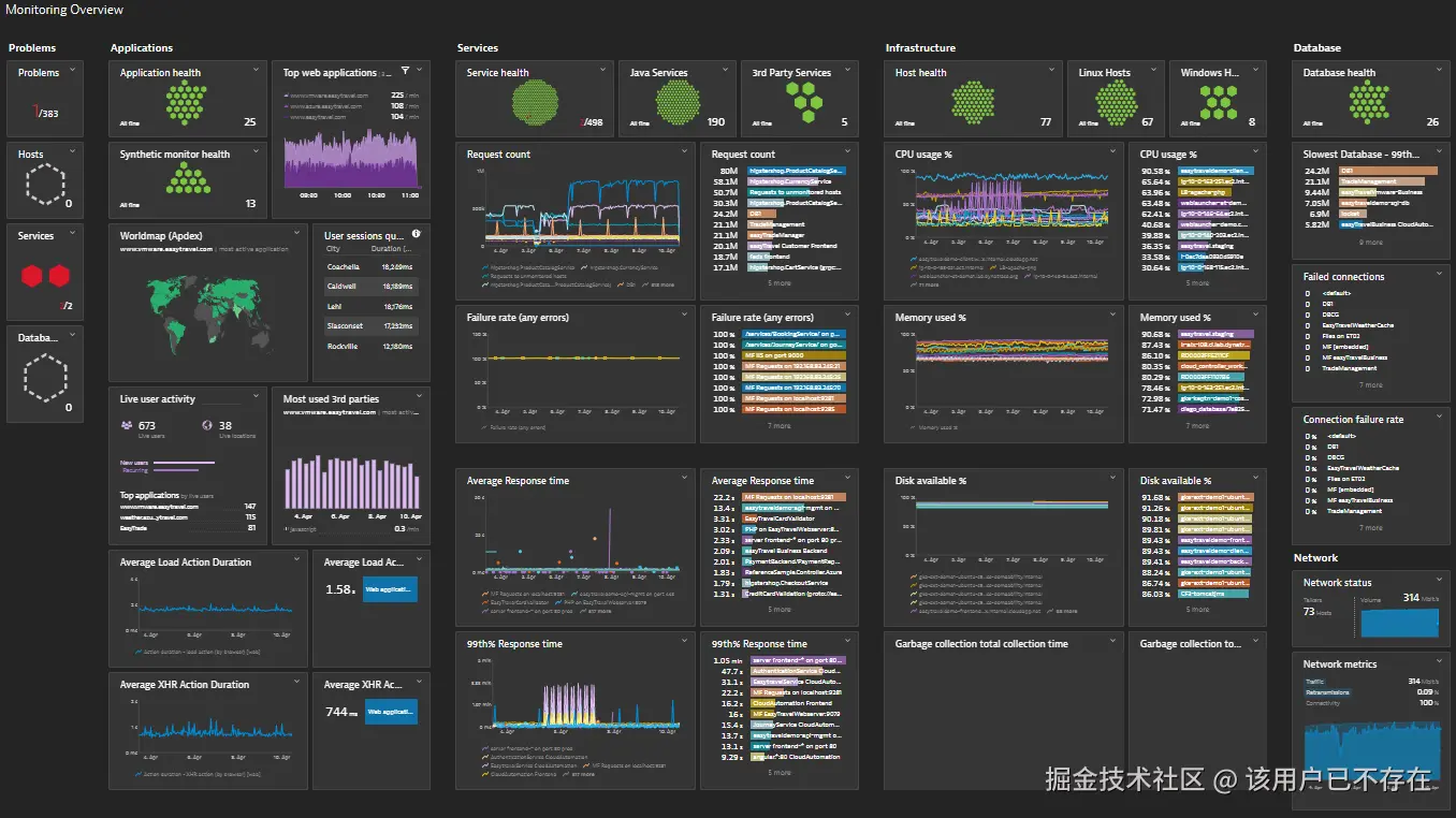 全栈可观测性: 覆盖从用户体验到代码层的完整监控,提供端到端的可视性。