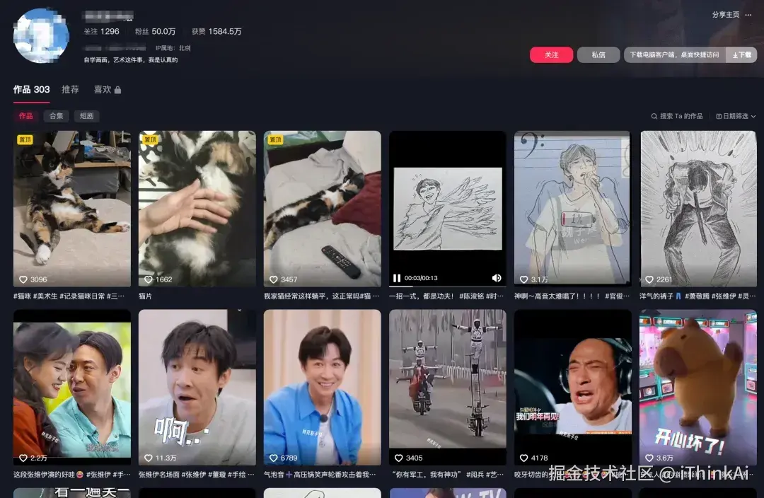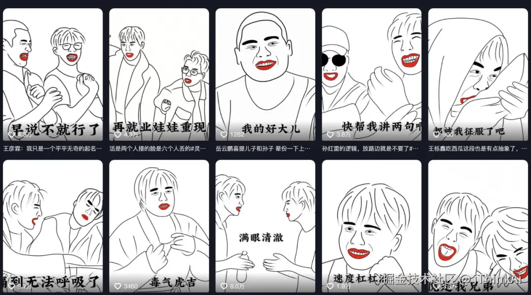 最近这一类爆款视频,博主用AI把普通素材转成手绘魔性动画,配上搞怪音效后播 放量轻松破百万,轻松涨粉几十万。