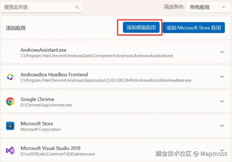 3、回到“图形设置”页面, 点击“添加桌面应用” 粘贴路径,并点击“添加"按钮;