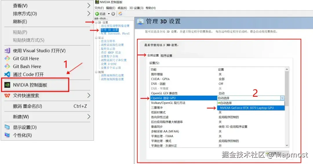 以NVIDIA显卡设置为例,选择“NVIDIA控制面板”,在“全局设置”中将"OpenGL渲染GPU"更改为“高性能NVIDIA处理器”,或者直接选择你的独立显卡型号。这样,显卡就会在运行相关软件时切换到高性能模式,让三维场景加载更加流畅。