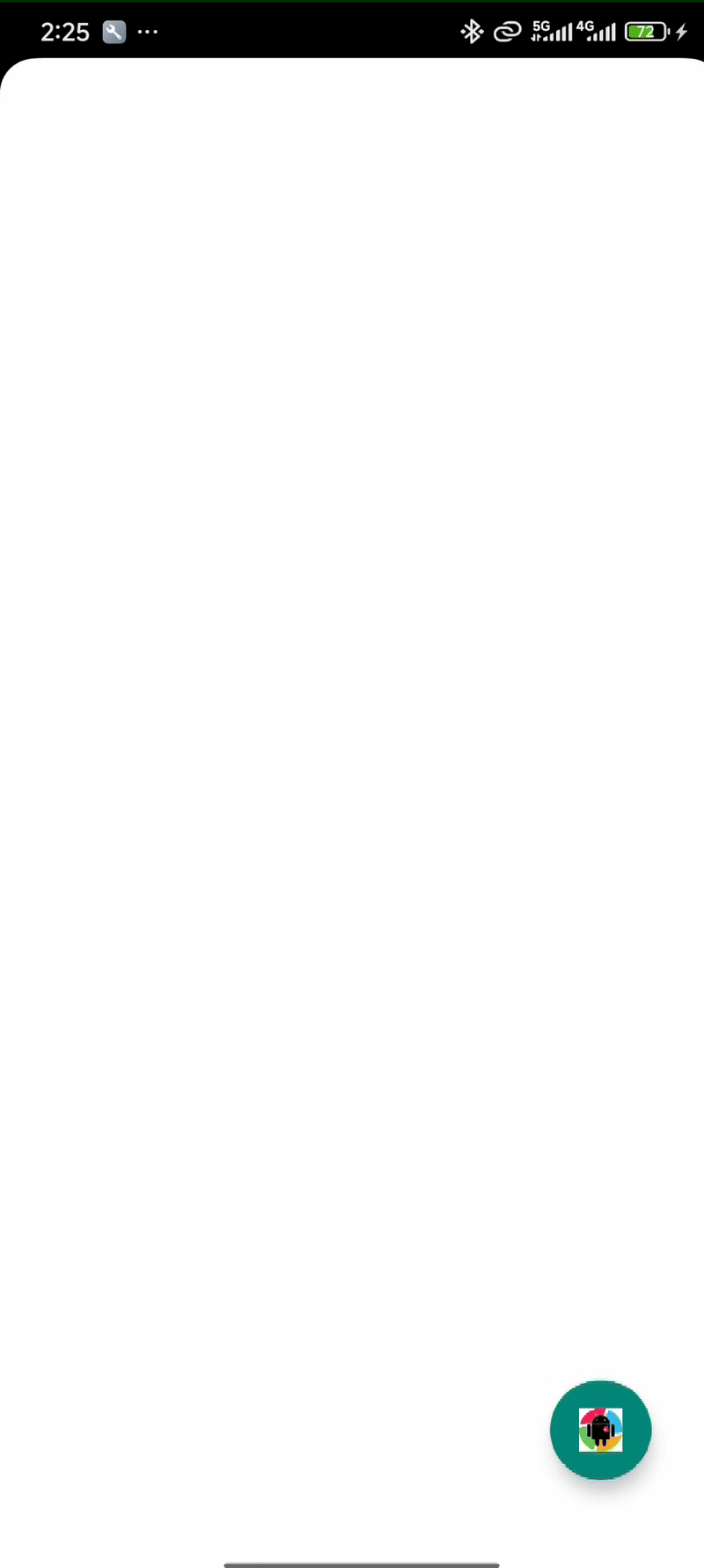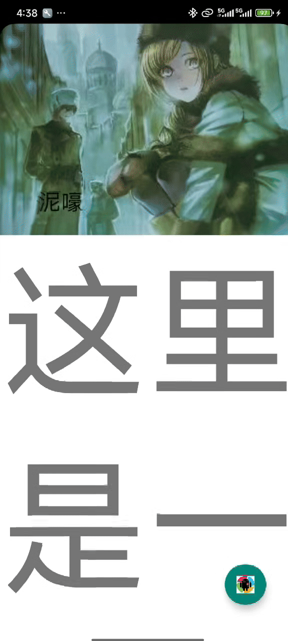 FloatingActionButton (FAB) 是一个圆形的按钮,悬浮在界面内容之上,通常位于屏幕的右下角。它用于执行最重要的、最常用的操作。单独使用,布局如下: