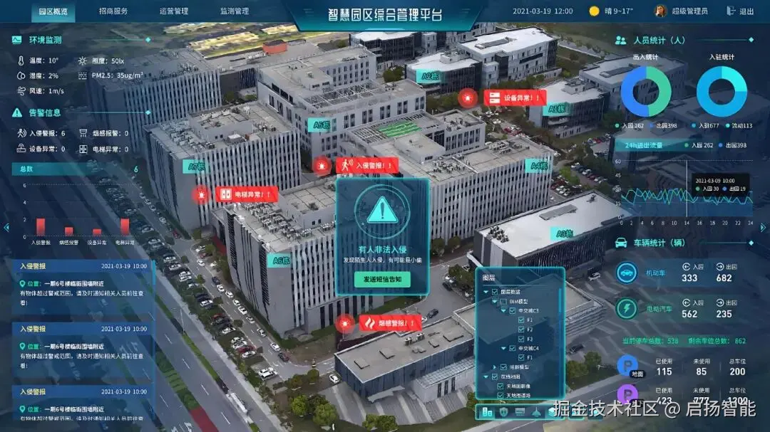 社会经济发展的不断增快,促使产业园区的空间、人流、基础设施都在进一步扩大,园区的运营和管理的需求不断增多。传统的园区管理方式存在管理分散、数据不互通、物业难融合、系统管理粗略、高耗能等弊端,难以满足当下产业园区的需求。这就需要利用先进技术和智能软硬件,搭建可视化的智慧园区管理平台。
